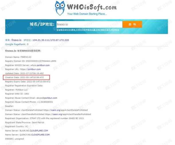 平台域名成立时间为2021年5月14日,距今不足半年,时间非常新。