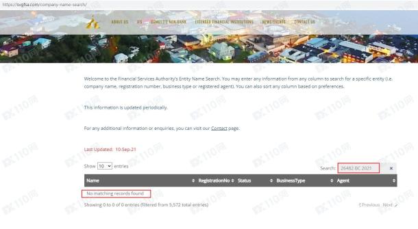 我们在圣文森特FSA使用公司名称及证号皆查无对应的公司信息,且圣文森特FSA不监管金融衍生品,显然该平台也并无监管。